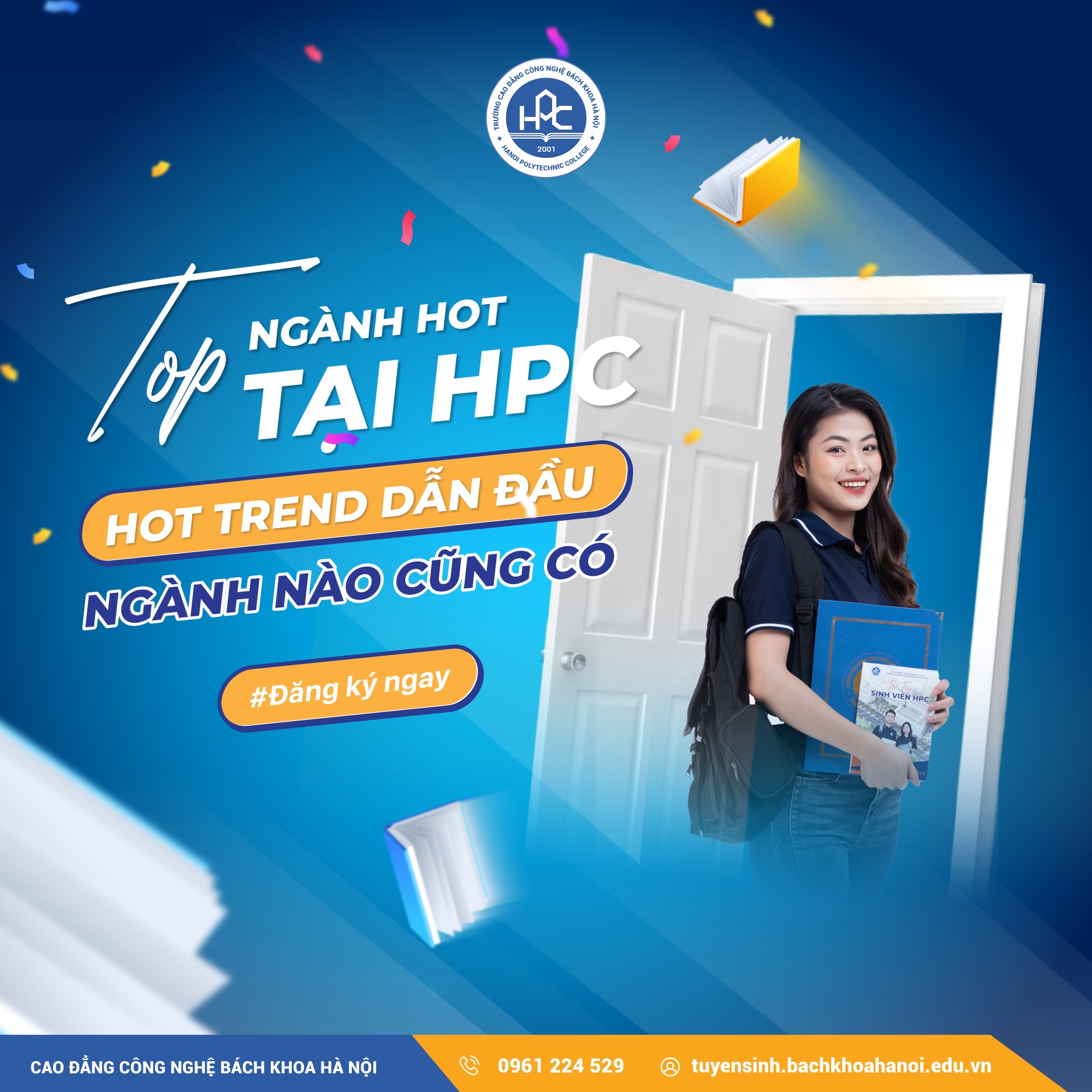 Trường Cao đẳng Công nghệ Bách khoa Hà Nội (HPC) có hơn 24 năm hoạt động trong hệ thống Giáo dục nghề nghiệp Quốc gia. Nhà trường chính thức mở chỉ tiêu tuyển sinh cao đẳng chính quy cho 24+ ngành học bắt kịp xu hướng thị trường lao động.