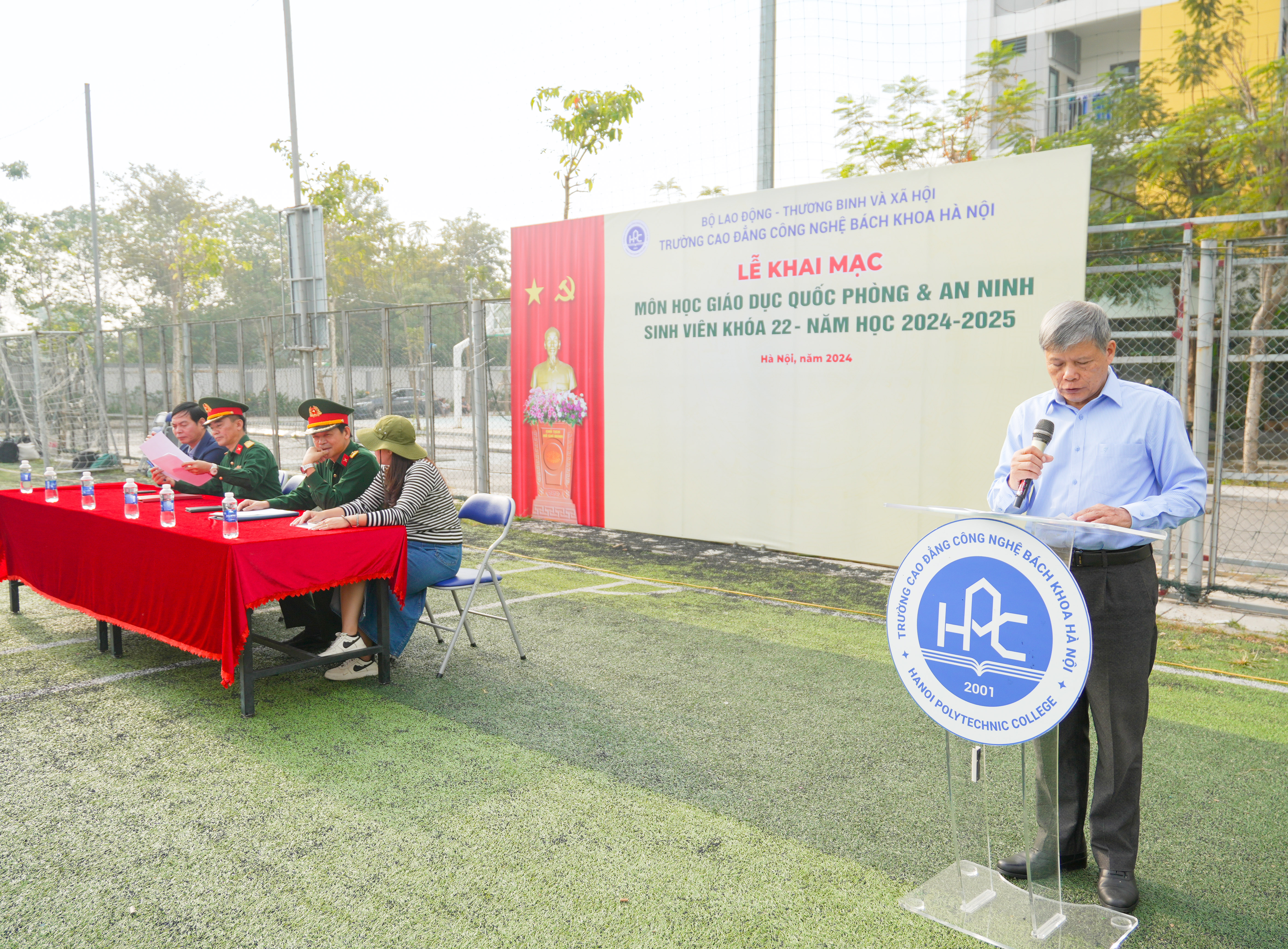 Tại buổi khai mạc, thầy Ngô Văn Sự – Phó Hiệu trưởng Nhà trường đã nhấn mạnh, môn học GDQP&AN là một nội dung quan trọng trong nền giáo dục quốc dân. Thông qua môn học, sinh viên Trường Cao đẳng Công nghệ Bách khoa Hà Nội (HPC) được trang bị những kiến thức cơ bản về quốc phòng, an ninh, những kỹ năng quân sự, rèn luyện nếp sống kỷ luật quân đội.