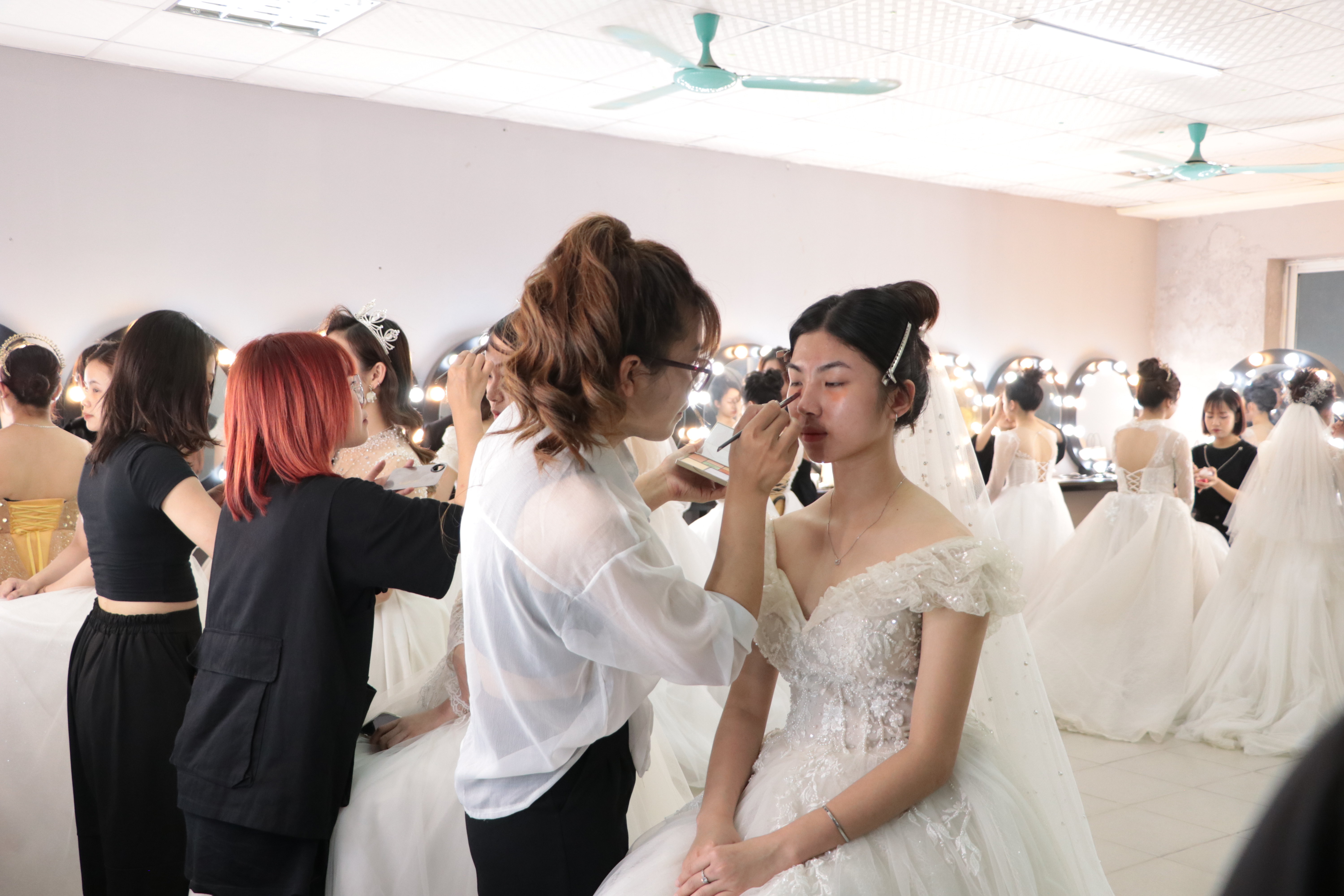 HPC - Phòng học trang điểm lớn được đầu tư hệ thống bàn gương trang điểm đèn LED thế hệ mới nhất, đảm bảo các yêu cầu khắt khe nhất...