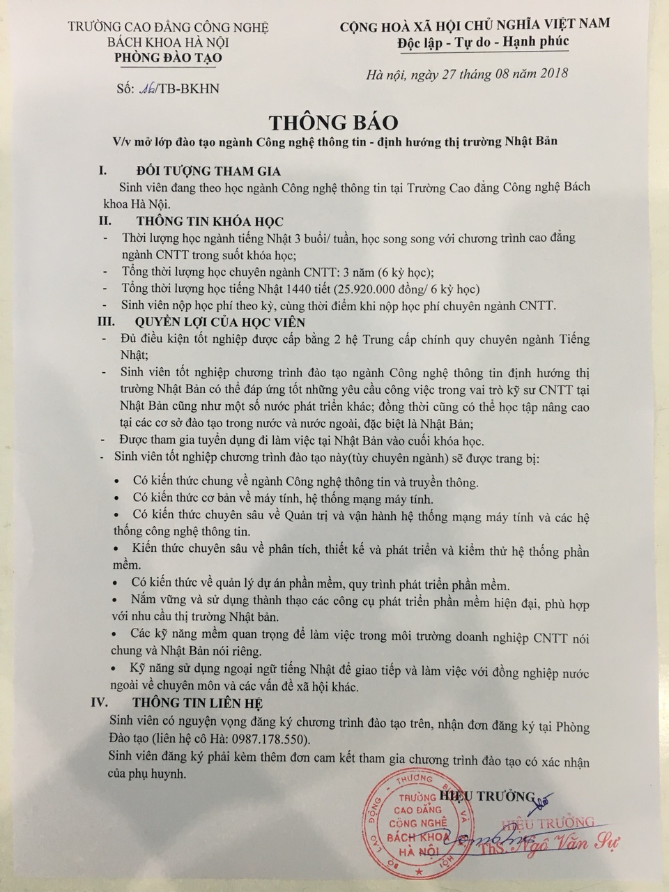 Thông báo mở lớp đào tạo ngành Công nghệ thông tin – Định hướng thị trường Nhật Bản