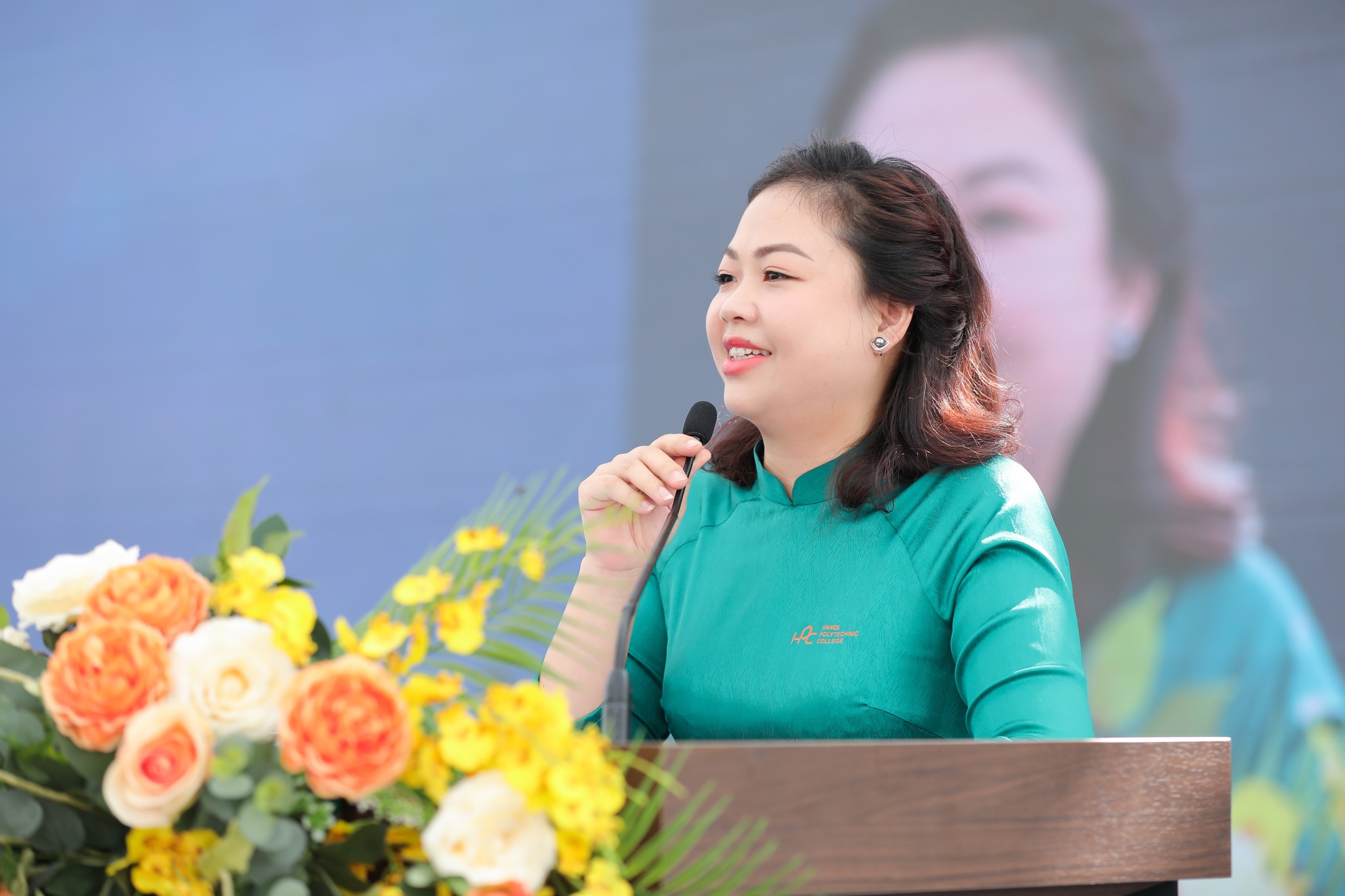 Phát biểu tại buổi lễ, thay mặt Ban Giám hiệu, cô Lê Thị Quỳnh Anh – Chủ tịch Hội đồng Nhà trường đã nhiệt liệt chúc mừng các tân cử nhân, tân kỹ sư thực hành đã cán đích thành công sau 3 năm học tập tại HPC.