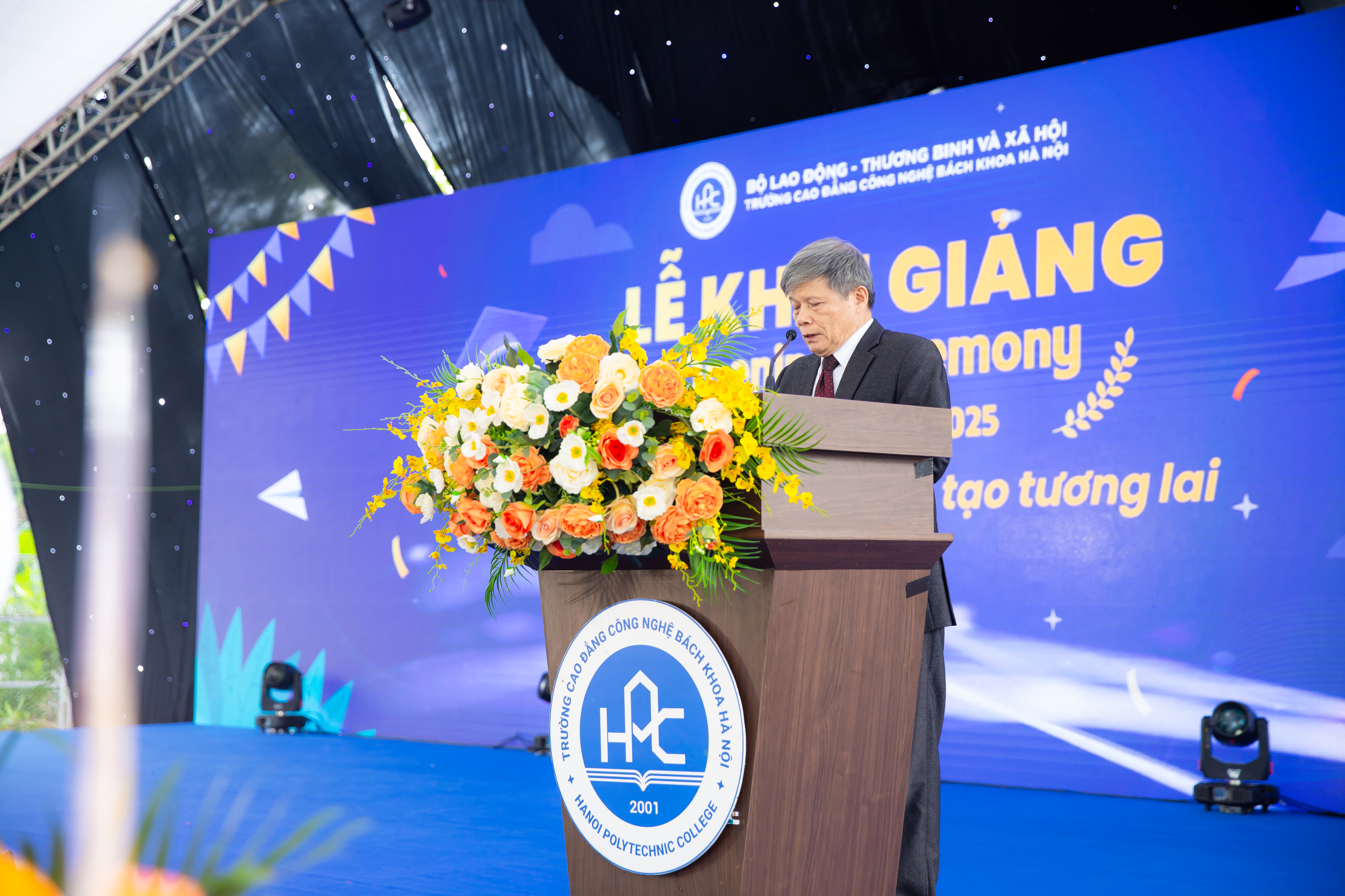 Tại buổi Lễ Khai giảng, thầy Ngô Văn Sự – Phó Hiệu trưởng Nhà trường đã gửi lời chúc mừng và thể hiện sự quyết tâm của thầy trò trong hành trình “Dẫn lối tri thức – kiến tạo tương lai” thật thành công tại HPC. Thầy nhấn mạnh: “Ở HPC, các em sẽ được tạo mọi điều kiện để phát triển toàn diện, nắm bắt và ứng dụng kiến thức chuyên môn, rèn luyện kỹ năng đa dạng và phát huy những tố chất của thế hệ sinh viên toàn cầu.