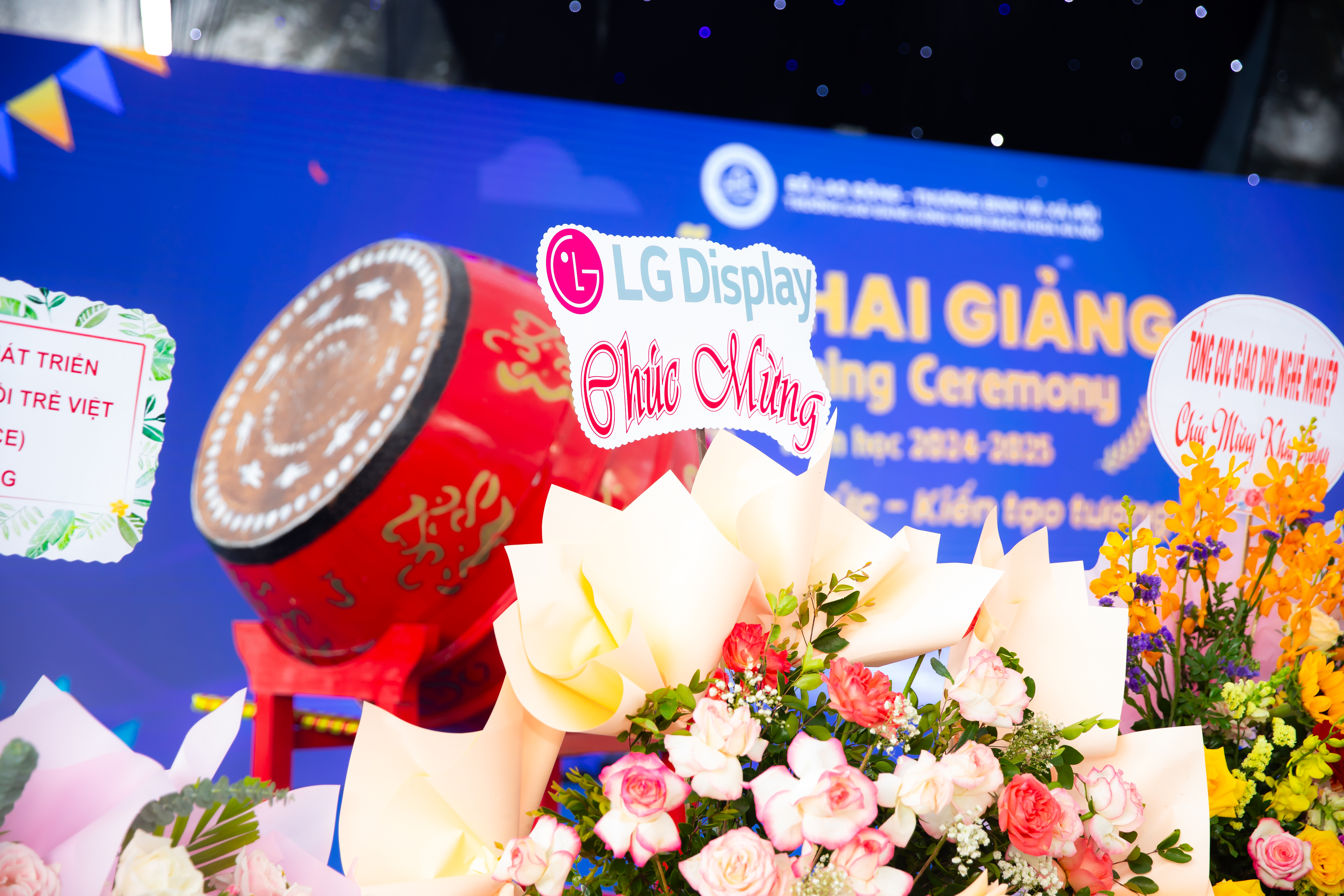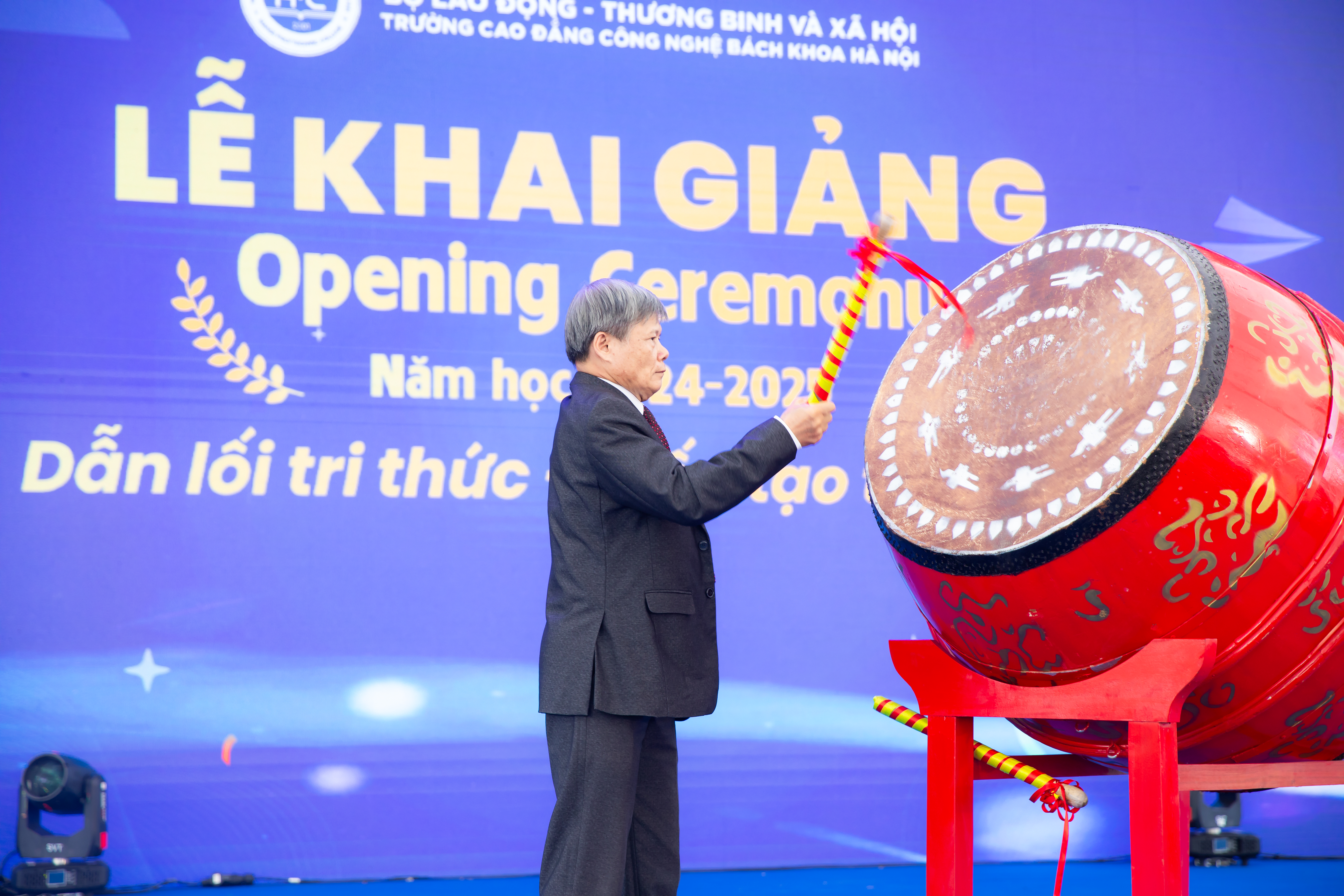 Thầy Ngô Văn Sự – Phó Hiệu trưởng Nhà trường đánh trống khai trường tại Lễ khai giảng năm học 2024 – 2025