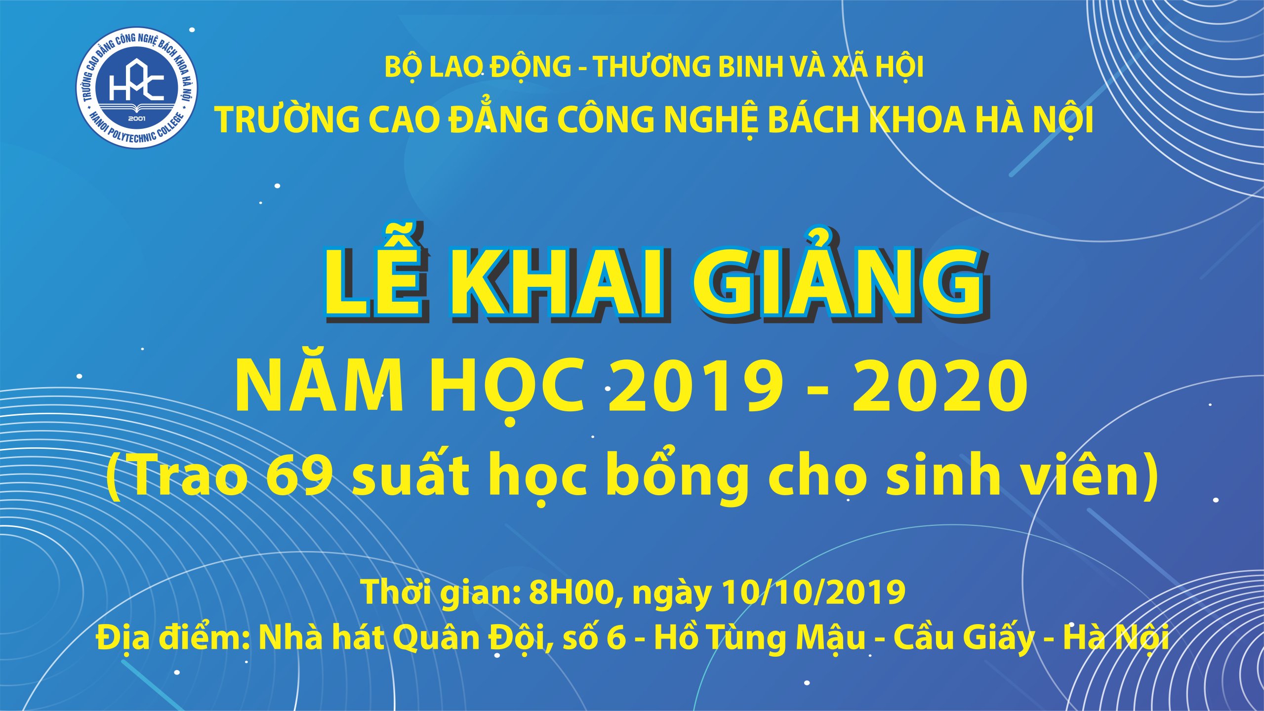 HPC - Ngày 10/10, Trường Cao đẳng Công nghệ Bách khoa Hà Nội sẽ tổ chức Lễ Khai giảng năm học mới 2019 - 2020, và Trao tặng học bổng...