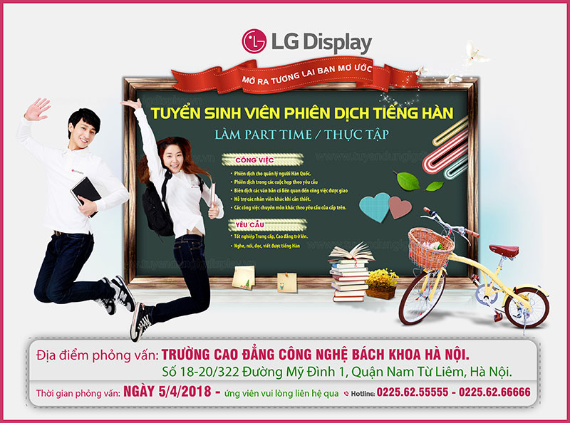 HPC - Ngày 5/4/2018, tại Trường Cao đẳng Công nghệ Bách khoa Hà Nội, Công ty LG Display Việt Nam Hải Phòng sẽ tổ chức buổi tuyển dụng nhân sự...